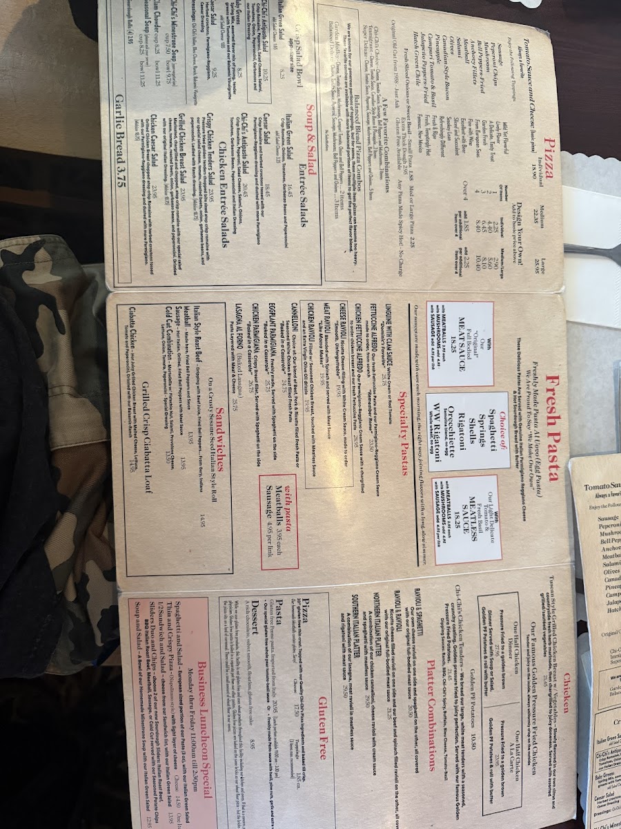 Chi-Chi's Pizza offers a menu that blends classic Italian comfort with the ease of a casual dining experience. Whether you're stopping by for a relaxed lunch or settling in for a cozy dinner, the menu features familiar favorites and a few unique touches that complement the warm, family-friendly atmosphere.