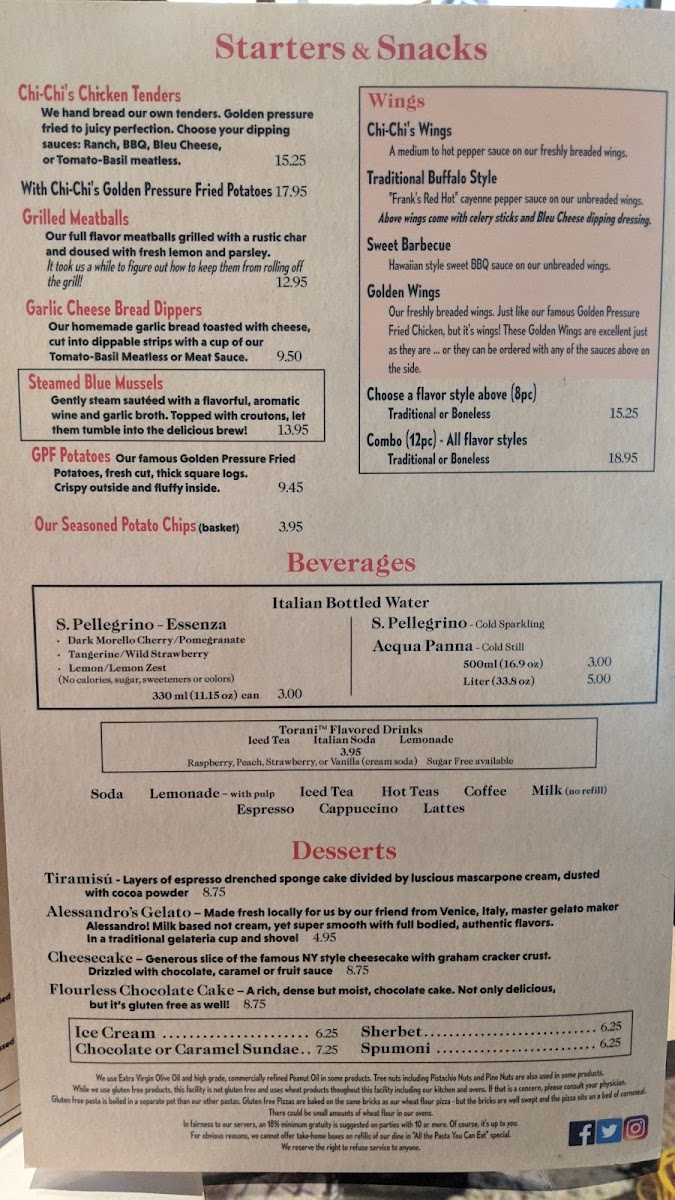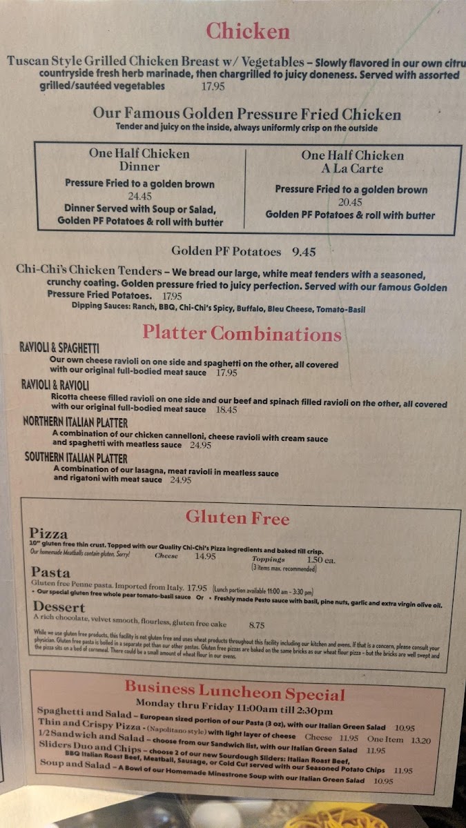 Chi-Chi's Pizza Menu